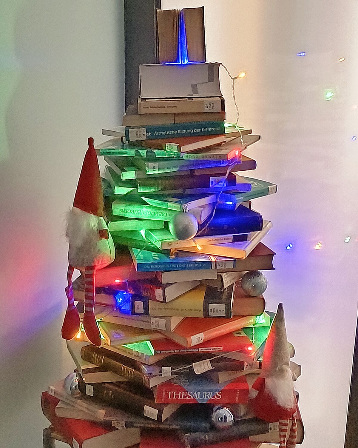 Wie jedes Jahr präsentieren wir auch 2025 wieder unseren Bücherbaum!