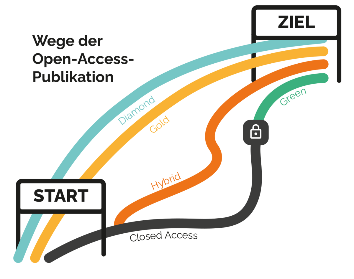 The golden route refers to the quality-checked initial publication of a publication in Open Access media that are solely Open Access. The publication is thus immediately and globally accessible to others free of charge. However, there are costs attached to for Open Access publications: Usually, authors are charged these fees by the publishers as publication fees or so-called article processing charges (APCs). Gold Open Access publications are published under a Creative Commons licence.